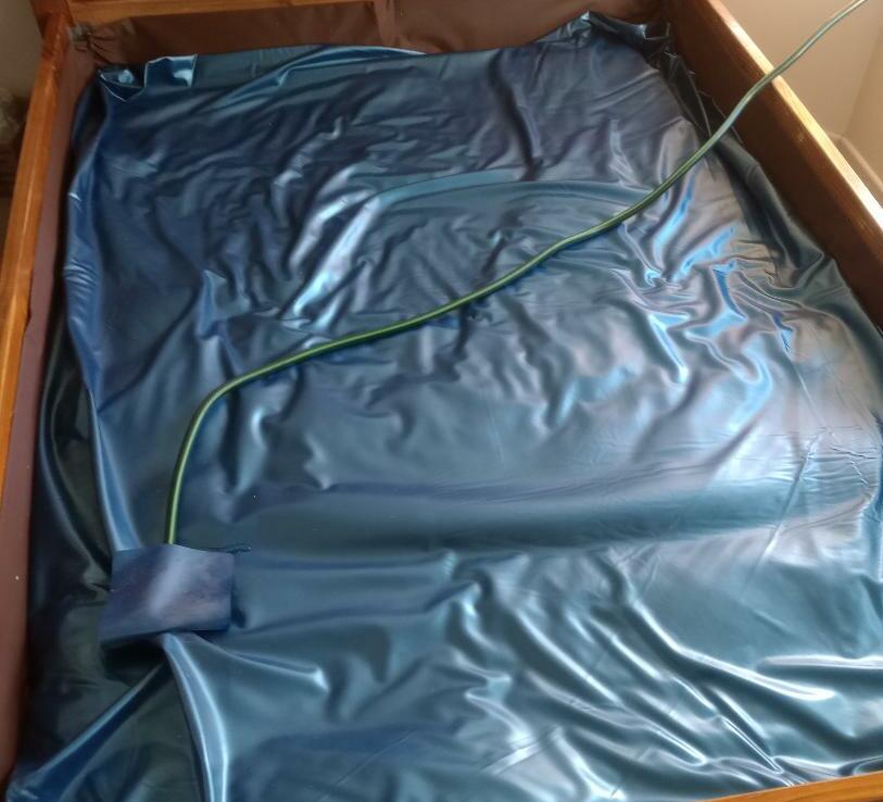 Image of Queen timber frame waterbed with intact Dacron layer system after 14 years.