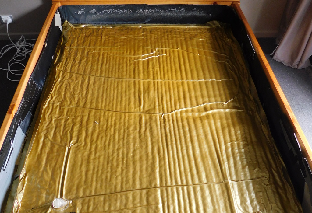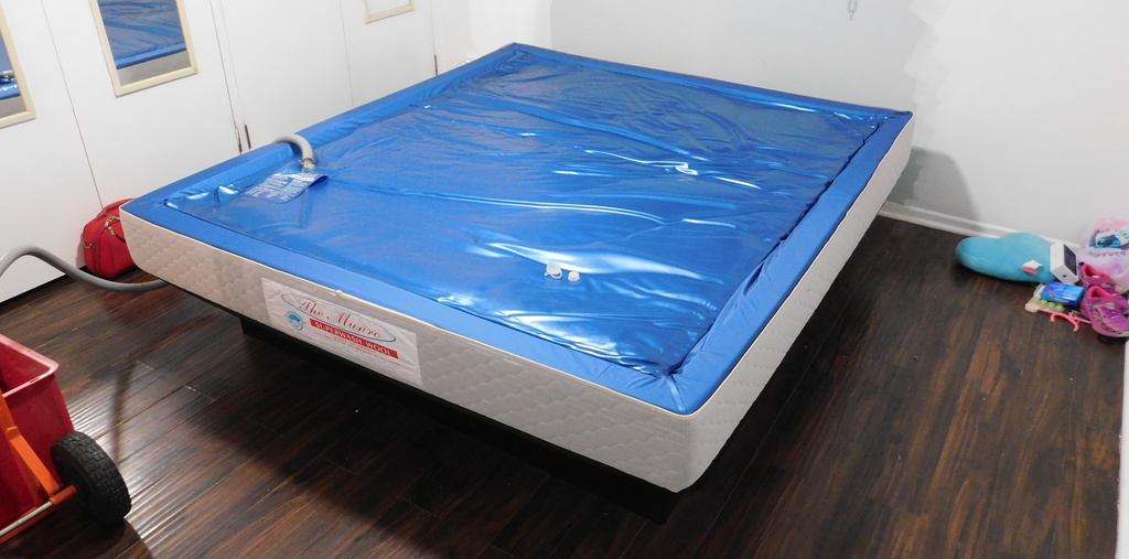 Image of Queen timber frame waterbed with intact Dacron layer system after 14 years.